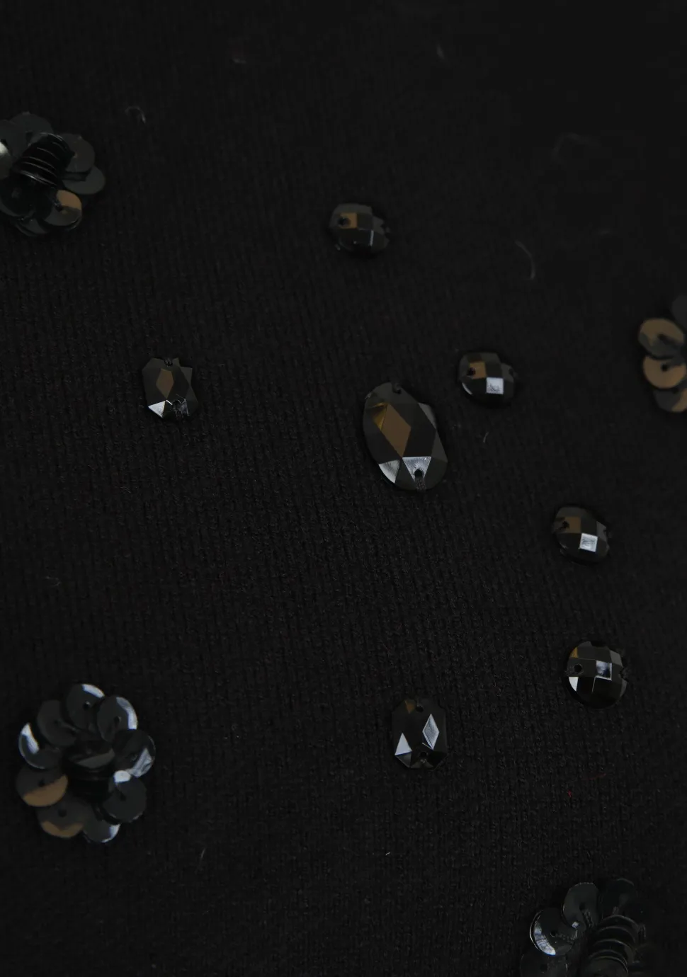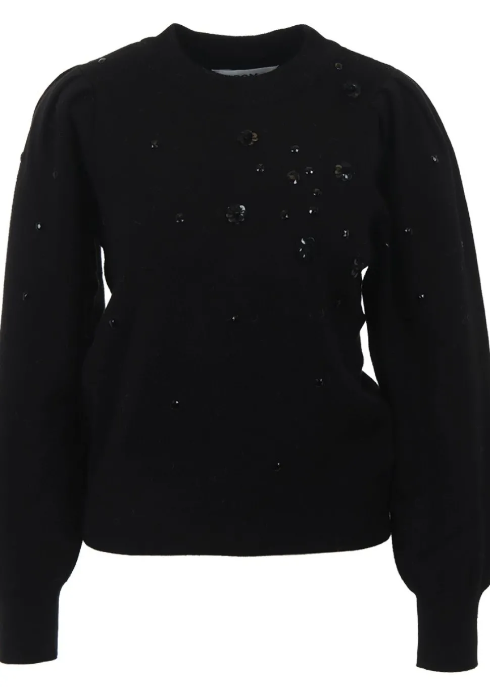 – Pullover voorzien van een pailletten detail en pofmouwen.