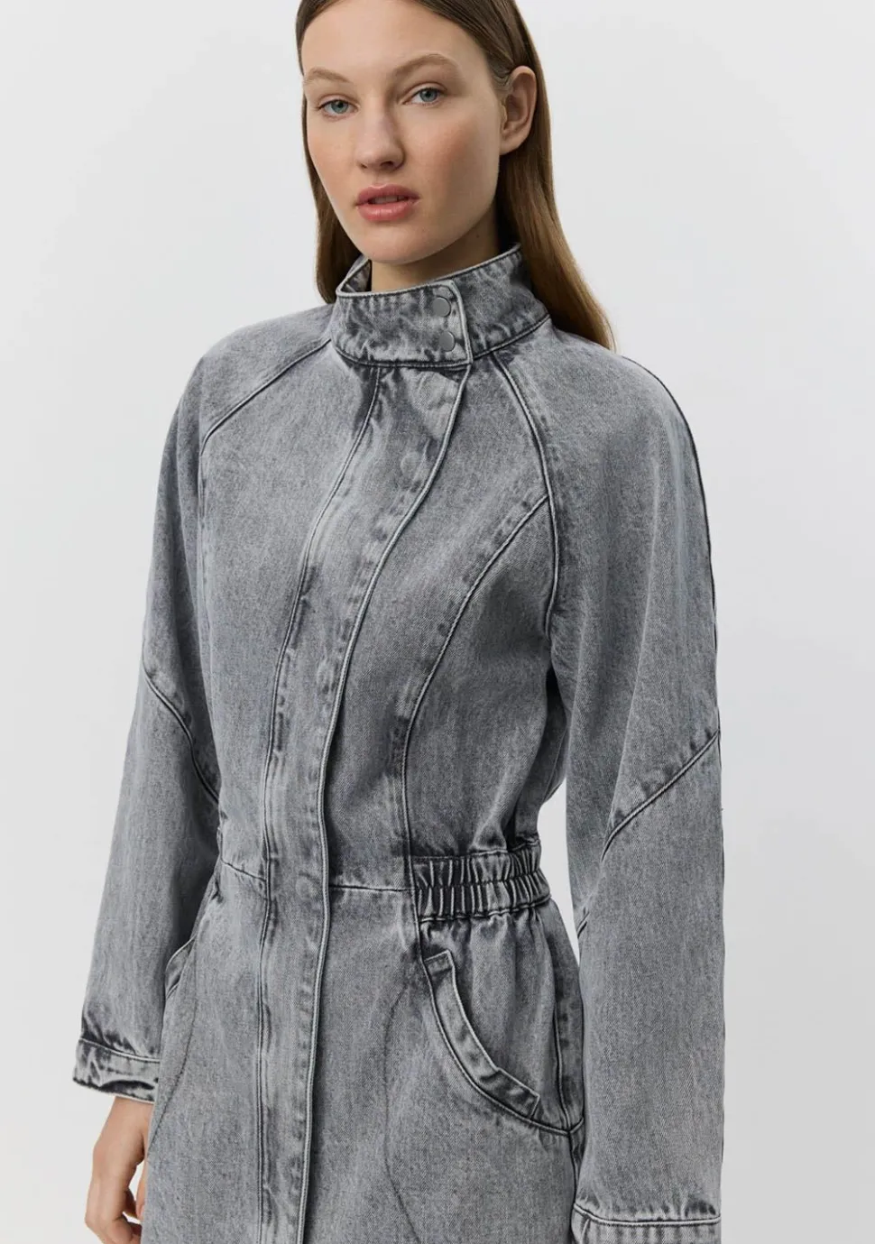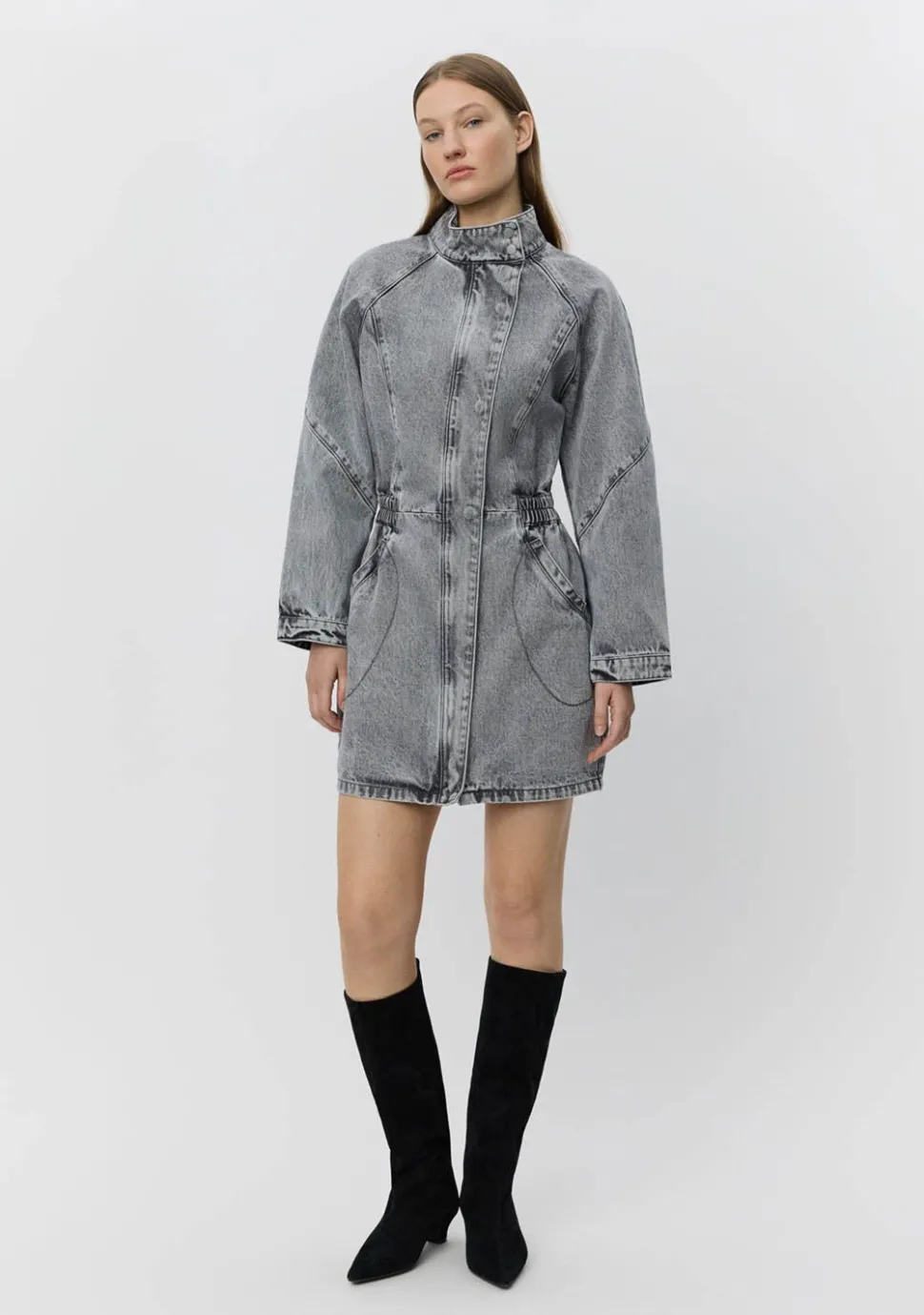 – Het model is 1.76m lang en draagt maat 34