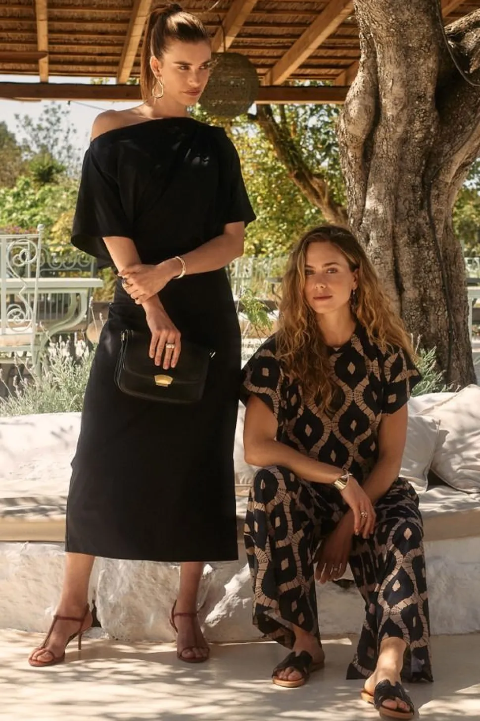 – Ineke dress is gemaakt van travel medium travelstof. De jurk heeft een off shoulder detail en is afgewerkt met vleermuis mouwen. De zijnaad is afgewerkt met een elegante split accent.